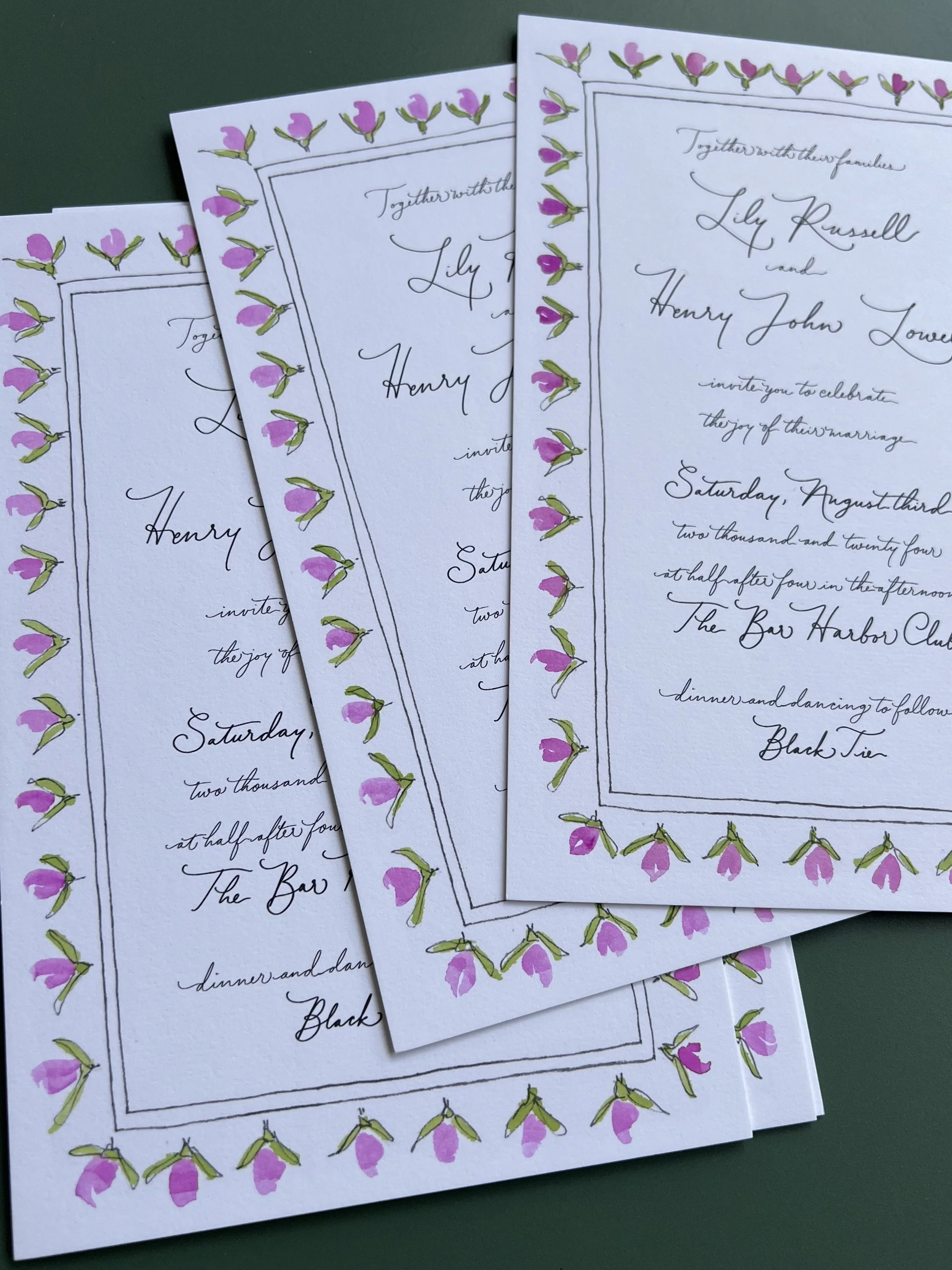 From handwritten calligraphy, crest design, to individually hand painted watercolor illustrations, every detail is thoughtfully created to make a one-of-a-kind stationery experience.
